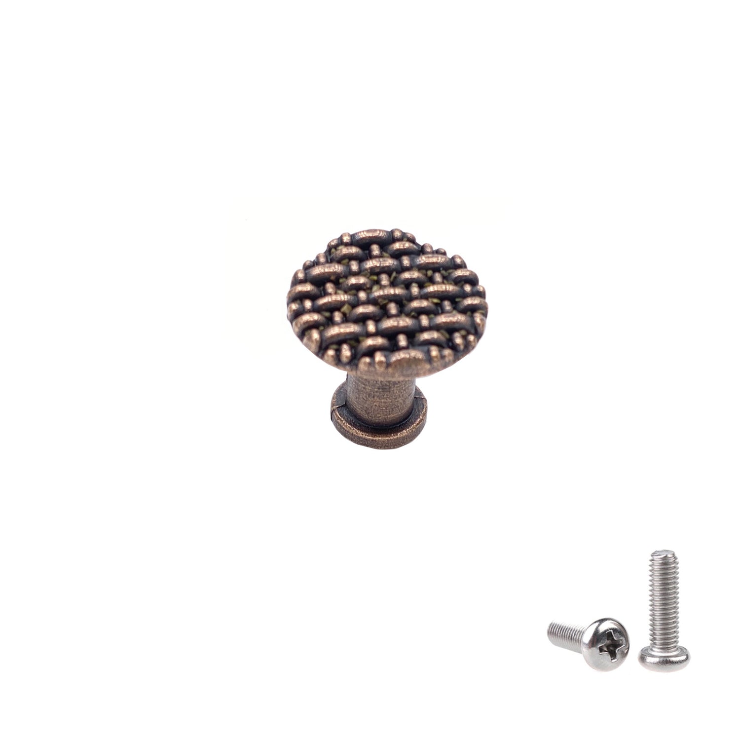 Crafted from durable antique copper, it offers both beauty and long-lasting performance. Each knob is individually packed to ensure it arrives in pristine condition and includes compatible screws for quick, easy installation.